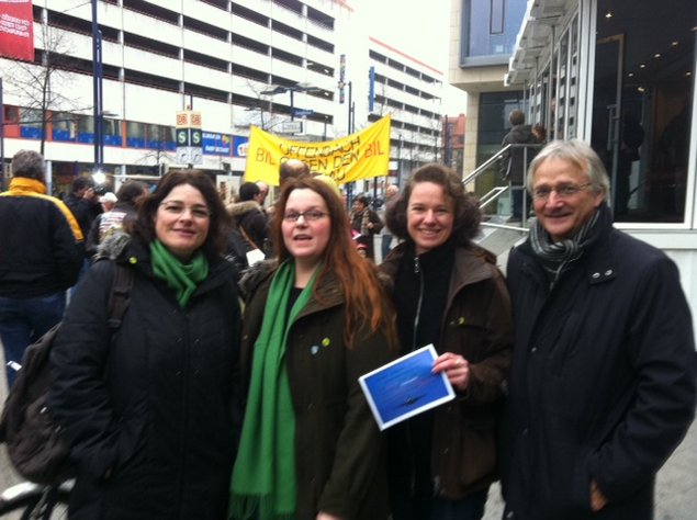 Mehr als 4000 Menschen nahmen am Samstag, den 17.09.2011 an der von uns Grünen mitgetragenen Demonstration "Menschenkette gegen Flüglärm" teil, zu der wir auch mit eigenen Plakaten mitaufgerufen haben. Diese beeindruckende Aktion zeugt von dem Leidensdruck der Offenbacher Bevölkerung, sowie der Richtigkeit Grüner Politik in Offenbach, die im Kampf gegen den rücksichtslosen Flughafenausbau einen ihrer Ursprünge hat. Auch am darauffolgenden Samstag, am 24.09.2011 sammelten Offenbacher Grüne am Wilhemsplatz Unterschriften gegen die negativen Auswirkungen der Fraport-Entwicklungspolitik. Diese werden dem Bundesverwaltungsgericht in Leipzig zugeschickt, dass über den Flughafenausbau zu entscheiden hat.