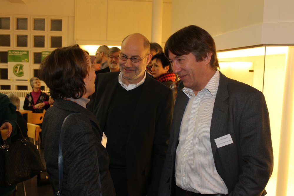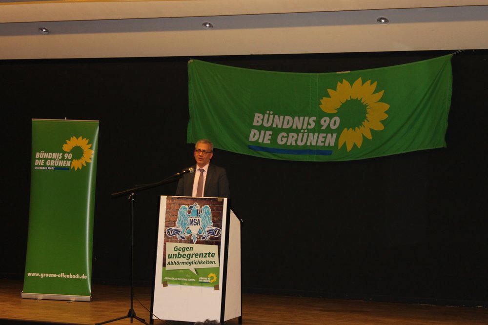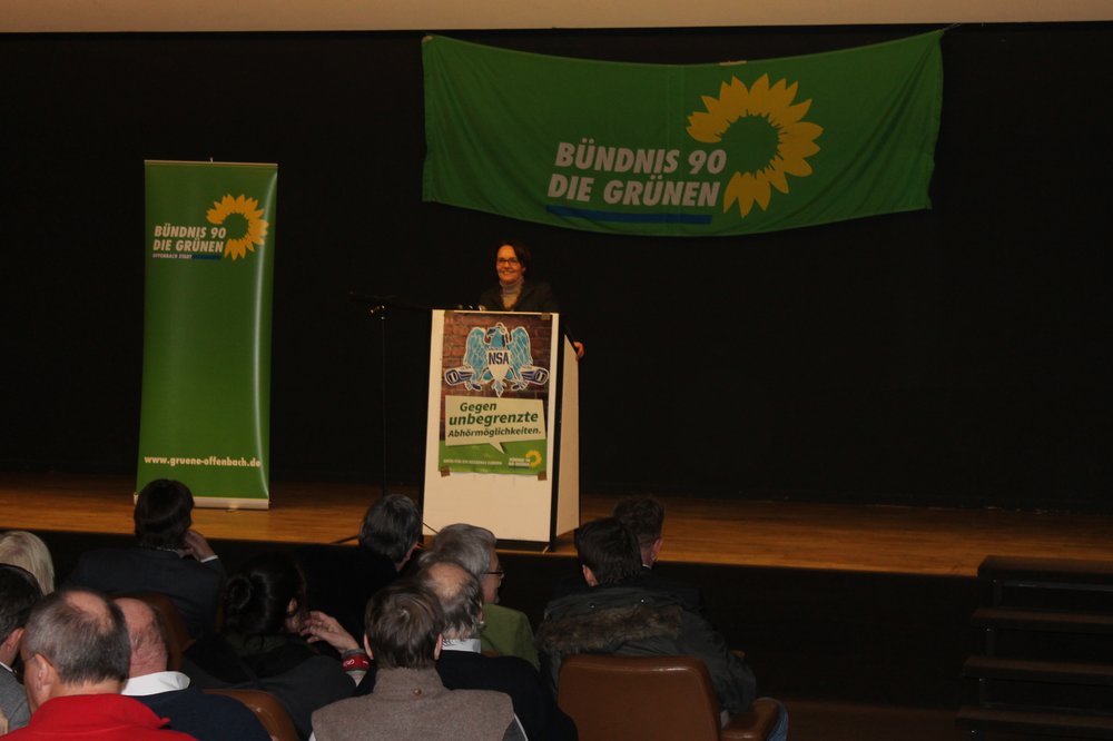 Gute Stimmung und Bürgernähe im Ledermuseum: rund 140 Bürgerinnen und Bürger waren gekommen und wurden von Vorstandssprecherin Birgit Simon hinsichtlich der Ereignisse in Paris daran erinnert, dass Friede und Demokratie für eine Gesellschaft das Wichtigste sind. Bürgerbeteiligung heißt, sich für die Stadt zu engagieren und im Dialog mit den Menschen zu bleiben. Bürgermeister Peter Schneider räumte ein, dass es im Hinblick auf die schwierige Finanzlage eine Herausforderung ist, in dieser Stadt Politik zu machen. Trotz des gekürzten Haushalts konnte er Fortschritte in der Umsetzung grüner Ziele vermelden, wie z. B. eine bessere Kinderbetreuung, die Umweltzone und die Bio-Tonne. Verkehrs- und Wirtschaftsminister Tarek Al-Wazir vermeldete in seinem Grußwort, das Hessen der Koalition gegen Diskriminierung beigetreten ist und das man an einer bedarfsorientierten Verteilung der Gelder aus dem Finanzausgleich arbeitet, damit die Kommunen die Grundleistungen des Staates gewährleisten können. So sollten auch Stellen für Lehrer und Sozialpersonal nicht nach Schülerzahlen, sondern nach einem Sozialindex berechnet werden. Wettbewerb erhalten, Rechtslage beachten, Bürger entlasten lautet die Marschroute in Sachen Fluglärm. Die Plausibilitätsprüfung zu Terminal 3 ist noch nicht abgeschlossen, eine Stabstelle zur Lärmreduzierung wurde eingerichtet und auch über Lärmobergrenzen muss noch diskutiert werden.