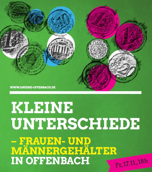 Frauen und Männer verdienen in Offenbach das Gleiche, zumindest fast. Das zeigt der im August erschienene hessische Lohnatlas 2015. Die Lohnlücke bei Vollzeitbeschäftigten lag bei 2,6 % und hat sich seit 2012 fast halbiert – damit sind wir Spitzenreiter, denn der Lohnunterschied beträgt hessenweit über 14 Prozent. Warum sind die Unterschiede ausgerechnet in Offenbach so gering? Was macht die Stadt richtig? Liegt es an den vielen Jobs mit kleinem Gehalt oder an den Neu-Offenbacher*innen? Die grünen Stadtverordneten möchten es gerne genauer wissen und laden für Freitag, den 17. November zu einem Fachabend mit Dr. Christa Larsen vom Institut für Wirtschaft, Arbeit und Kultur (IWAK) und Karin Dörr (Kommunale Frauenbeauftragte) ein.