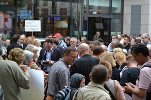 Die Angriffe auf einen Rabbiner und ein Team aus Reportern des SWR haben in Offenbach viele Menschen erschüttert. 250 Menschen haben sich deshalb am Freitag vor dem Komm eingefunden um an einer Mahnwache für Respekt und Toleranz teilzunehmen und deutlich zu machen, dass Offenbach eine tolerante Stadt ist, in der es keinen Platz für Radikalen Ansichten gibt.