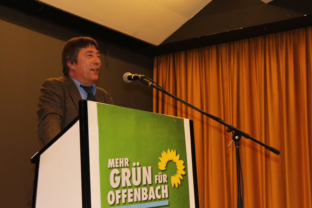 Bürgermeister Peter Schneiders Rückblick auf das vergangene Jahr fiel dagegen etwas versöhnlicher aus: Dank grüner Politik wurde in Offenbach die Umweltzone für eine bessere Luftreinhaltung eingeführt und die Elektromobilität wurde vorangebracht. Und worauf er besonders stolz ist: Offenbach ist Klimaschutz-Preisträger. Allein aufgrund des Beratungsprogramms für Firmen wurden 2015 in diesem Bereich 200 Tonnen C02-Ausstoß eingespart. Als weitere gute Meldungen sind zu vermerken: die Wasserversorgung ist wieder in regionaler Hand, der Schultheissweiher hat eine ausgezeichnete Wasserqualität, die Schulsanierung wird fortgesetzt und die Hafenschule ist in Planung. Und was Infrastruktur und Baulücken betrifft: hierzu ist viel grünes Gedankengut in den Masterplan für Offenbach eingeflossen.