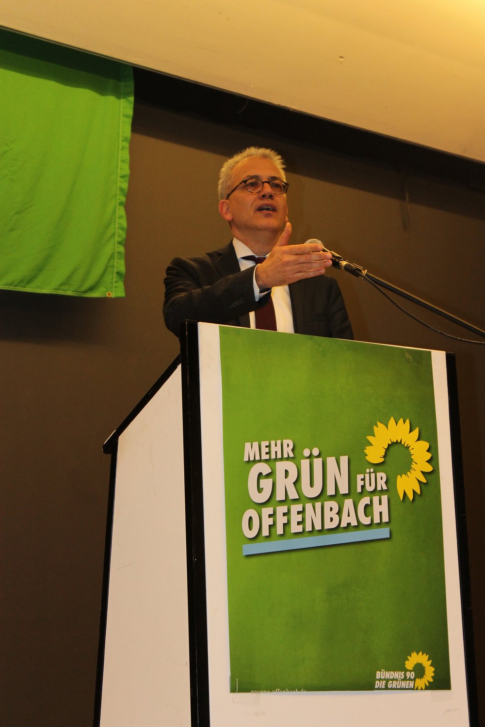 Unser Wirtschafts- und Verkehrsminister Tarek Al-Wazir bestätigte seinerseits, dass in der Schwarz/Grünen Koalition viele grüne Inhalte umgesetzt wurden: Die Energiewende kam wieder in Schwung, der Bannwald ist gesetzlich geschützt, der Ökö-Landbau gefördert. Hessen hat das größte Ganztagsschulprogramm, wesentlich mehr Gelder als je zuvor wurden für Zukunftsinvestitionen – u.a. für Schiene und Infrastruktur - bereitgestellt. Die Hochschulen bekommen mehr Geld, es gibt 1.800 zusätzliche Lehrerstellen und im Rahmen der Integration wurden die Mittel zur Sprachförderung und für die Aufgaben des Staates aufgestockt. Auch Offenbach profitiert: 18,7 Mio. Euro bringt der nach Bedarf strukturierte kommunale Finanzausgleich, die HfG kommt in den Hafen, 31,7 Mio. Euro Investitionsmittel werden bereitgestellt.
